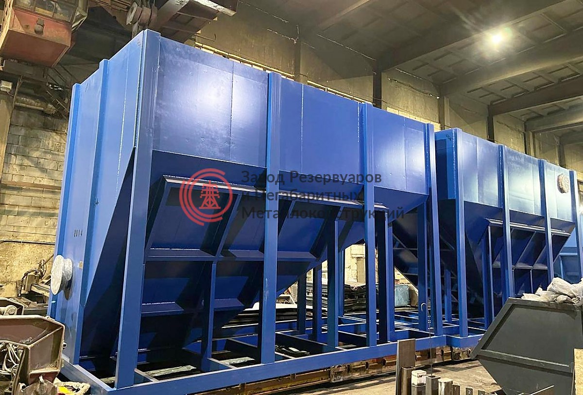 Это прямоугольный металлический бак, сваренный из стального листового проката. Для повышения прочности конструкции углы и стенки усилены уголком. ЗУМПФ может быть открытого и закрытого типа. Открытые баки используются в тех случаях, когда их заполнение осуществляется с использованием экскаватора или погрузчика.
