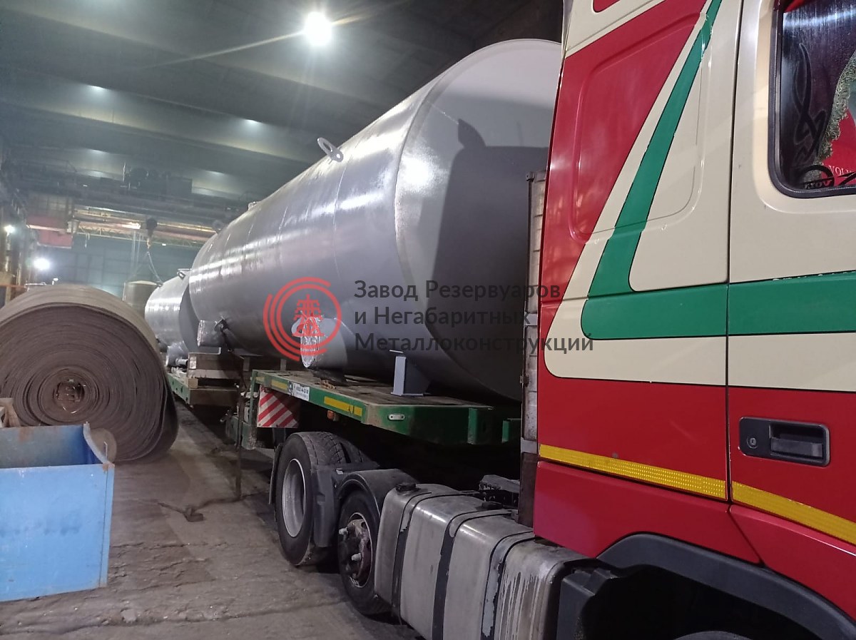 Готовые подземные горизонтальные резервуары транспортируются на склад для дальнейшей отправки заказчику.